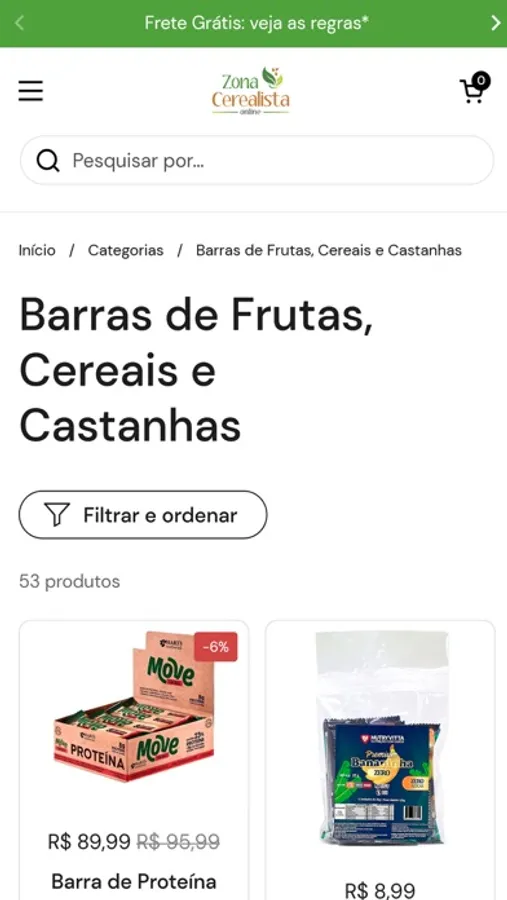 A Zona Cerealista Online é uma loja virtual de Produtos Naturais. Aqui você encontra Alimentos a Granel e todas as melhores marcas de Produtos Naturais e Orgânicos.