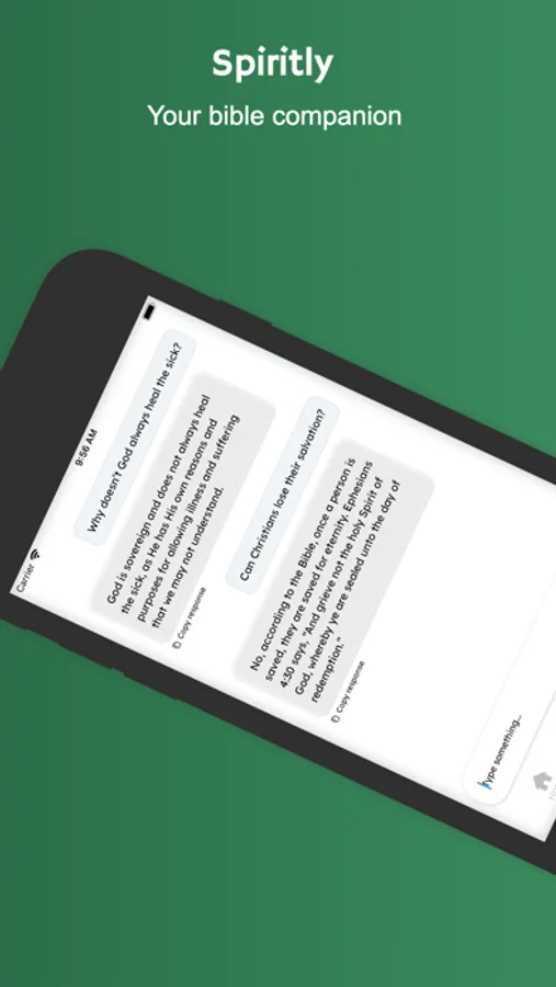 Spiritly is built with advanced AI, trained on an extensive database of biblical texts. Ask any question related to faith, scripture, or spirituality, and receive instant, detailed responses. Whether you're seeking explanations of complex biblical passages, or curious about broader spiritual themes, Spiritly provides thoughtful and comprehensive answers.