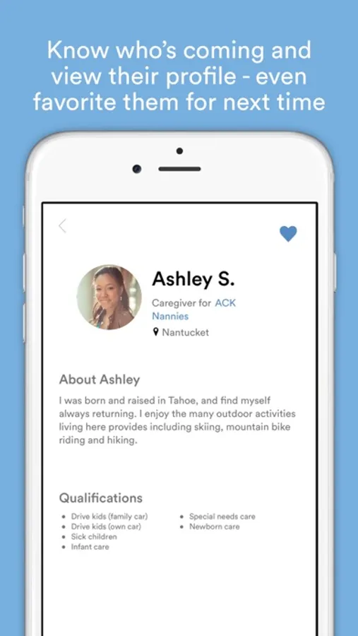 -Save past nannies and babysitters as favorites so you can get them again in the future