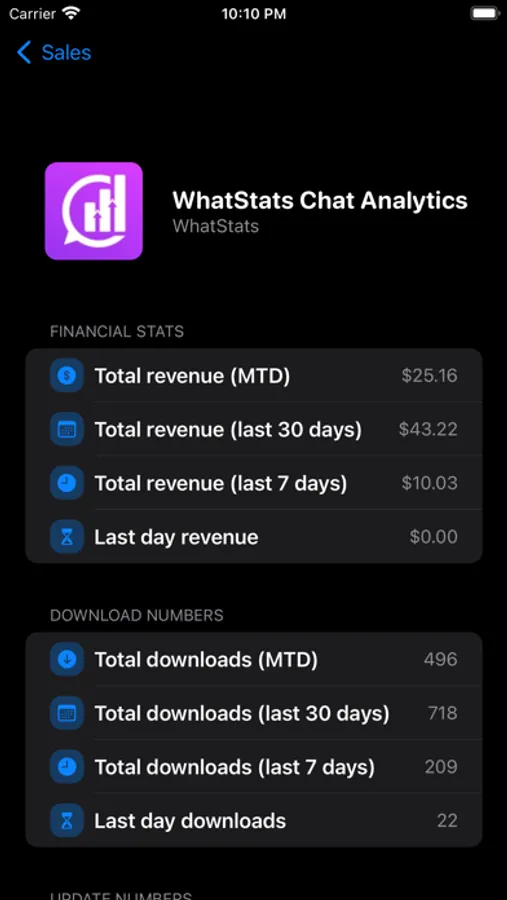 But we offer more than just an overview. Dive deeper into your data with our per-app breakdown, letting you understand exactly which products are driving your revenue. Keep an eye on downloads, updates, and redownloads for every app in your portfolio.