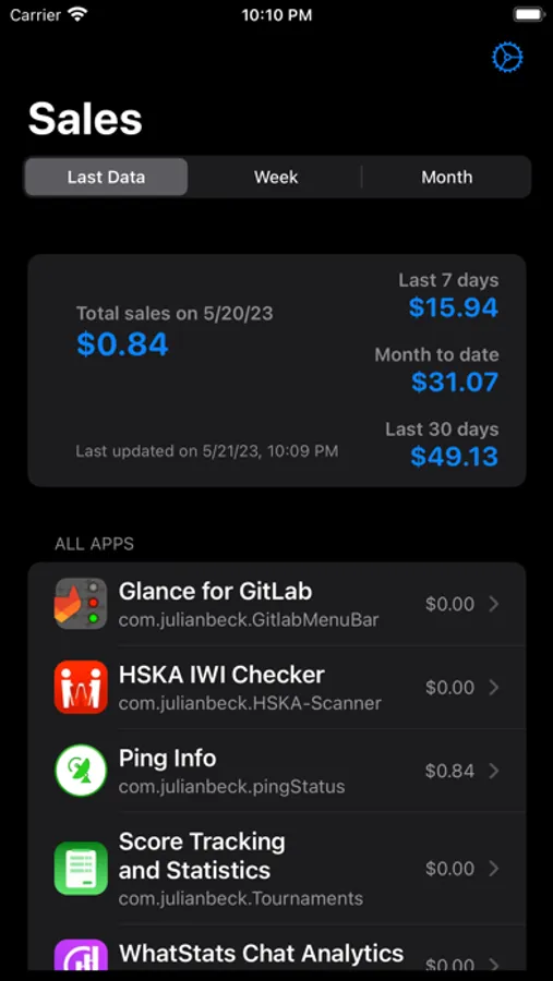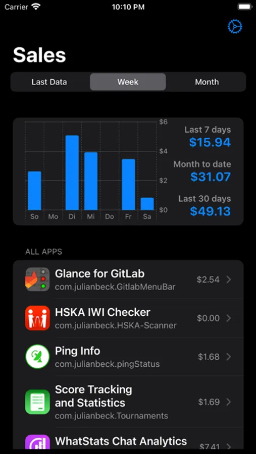 App-Earnings is a app for app developers that shows App Store Connect Financial Data in a comprehensive view. With our easy-to-navigate dashboard, you can monitor weekly and monthly sales, as well as month-to-date figures for each of your apps.