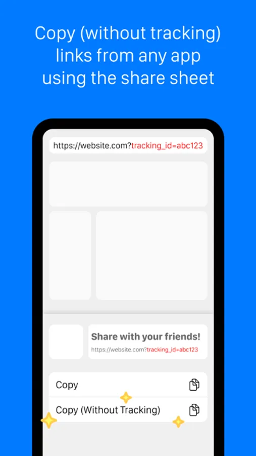 Clean Share is a powerful and user-friendly app that empowers you to share links without the burden of tracking identifiers. Our goal is to provide a seamless experience that protects your privacy, while keeping the sharing process simple and efficient.
