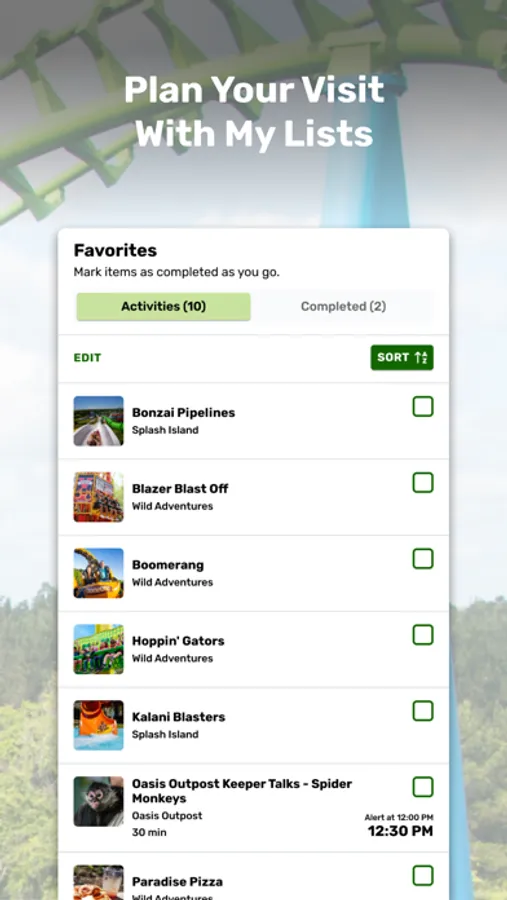 The Wild Adventures App ensures you maximize every moment with unique features such as: