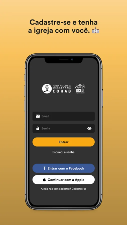 - Conecte-se com a igreja através dos grupos de interesse, receba conteúdo direcionado e obtenha sua carteirinha exclusiva.