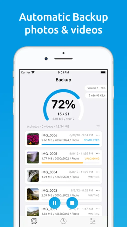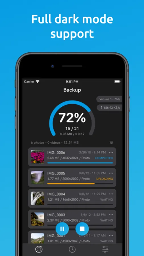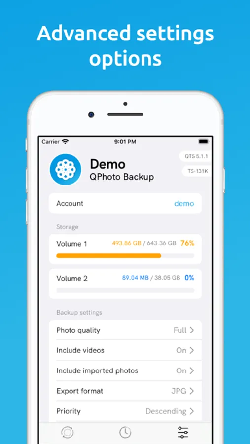 QPhoto Backup lets you backup all your photos & videos on your QNAP NAS (QTS 4.0+, QTS 5.0+ full support).