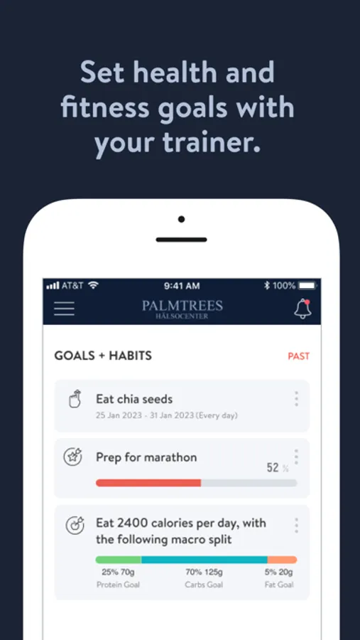 - Sätt hälso- och träningsmål och följ framsteg mot dina mål med din coach