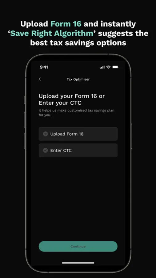 With just a simple upload of your Form 16 or tax statement, our algorithm suggests the best ways to optimize your tax and helps you automate tax savings in various financial products.