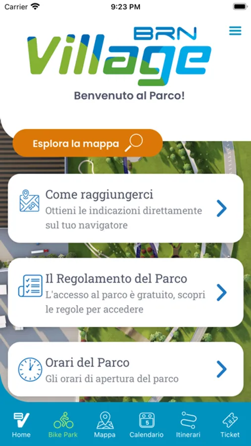 L'APP MyBrnVillage è lo strumento ideale per muoversi all'interno del parco, avendo sempre a portata di mano la possibilità di noleggiare una bici, acquistare biglietti di ingresso e abbonamenti per le piste a pagamento, oppure inviare un ordine al Bike Café per uno snack da consumare comodamente seduto al BrnBikeCafé oppure all’aria aperta, in compagnia di chi vuoi tu! Maggiori info su www.brnvillage.it