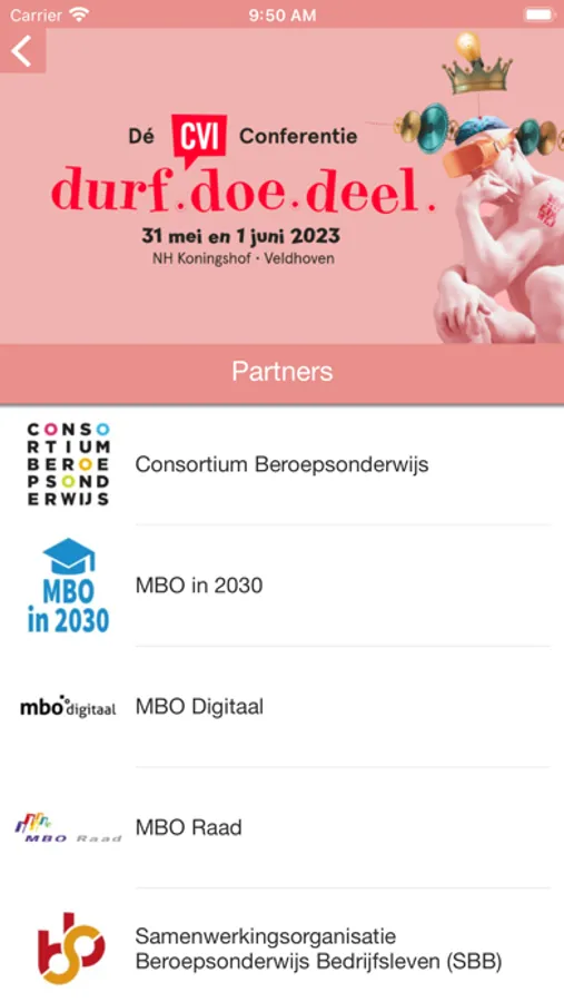 De officiële app van de CVI Conferentie nieuwe stijl 2023! Blijf voortdurend op de hoogte van het programma (Keynotes, MBO Talks en workshops) en het laatste nieuws.