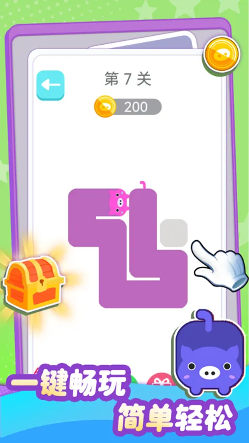 玩法:手指在屏幕上滑动,从猫咪头部开始逐个填满屏幕上的方格,需要注意的是线路不可交叉,且必须一笔填满所有方格