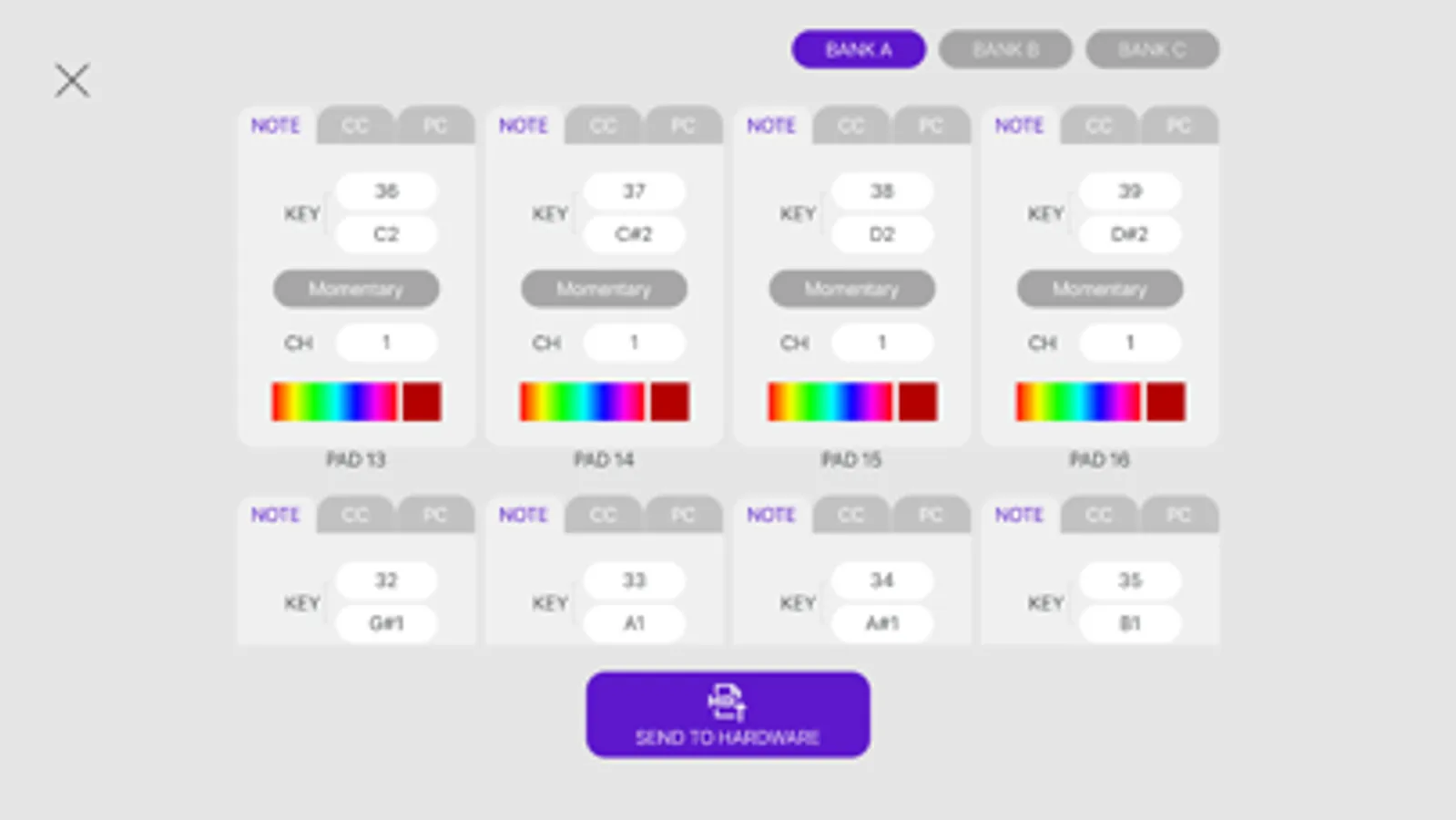 4.The knob area and drum pad area support storage of A/B/C three sets of parameter instructions, and BANK switching can be changed on the hardware.