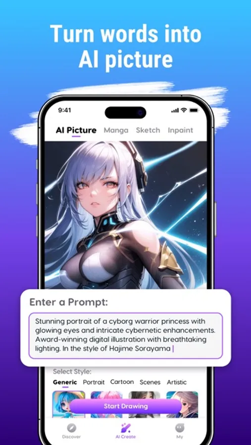 3D style, secondary style, ink style, science fiction style and other art styles, take you to break through the bottleneck of drawing skills, download the experience now!