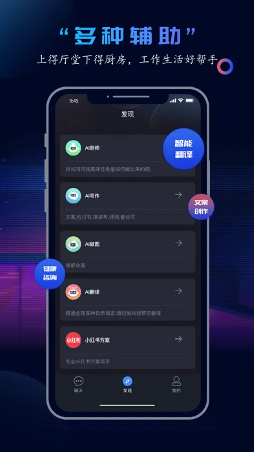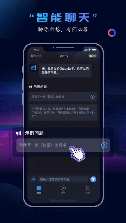 Chatly是一款智能聊天工具,集ai的大脑和科技于一身,它会通过与你的聊天内容、语气甚至是表情学习和分析,提供给你个性化、智能化的回复,同时可以帮助你创作文案,绘画等