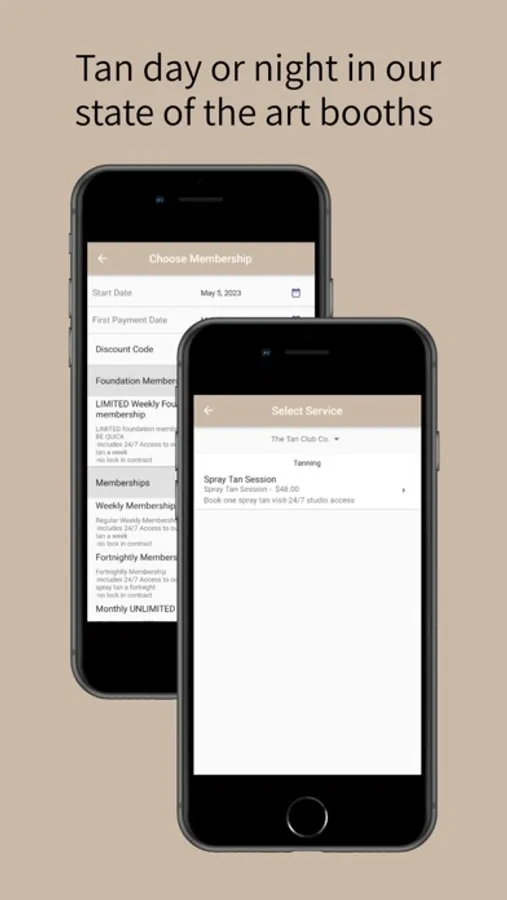 Join our members portal to book a casual tan or joint our membership and enjoy saving on each tan!