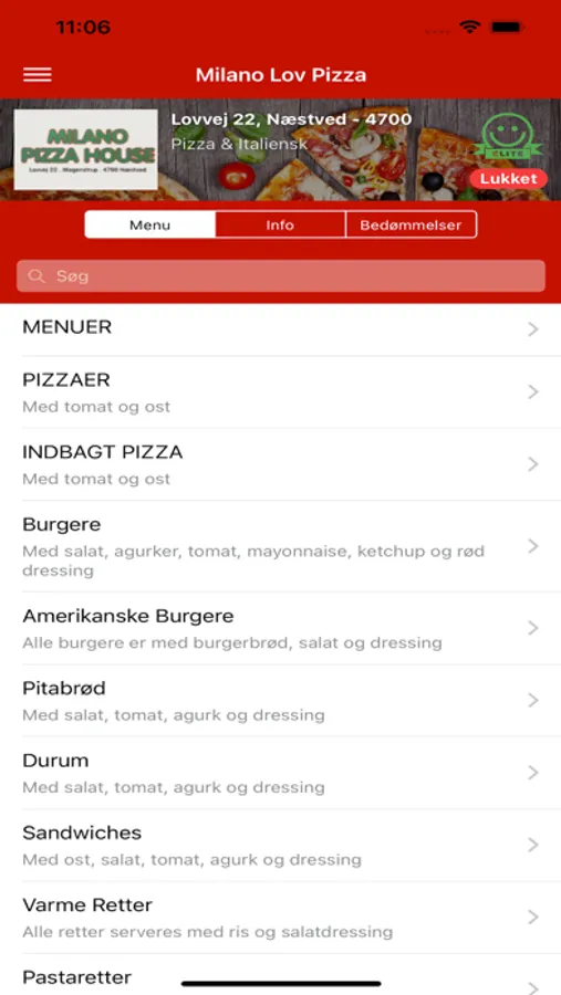 Bestil pizza, burger, pasta, m.m. med få tryk, nemt og hurtigt!