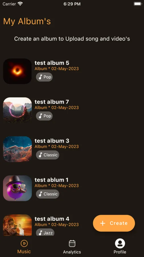 Introducing Fete Artists, the ultimate platform for artists, singers, and musicians to showcase their talents to the world. With Fete Artists, artists can easily upload their songs, music videos, and create albums all in one place. Our app provides a seamless user experience with easy-to-use tools for music creation and sharing. Whether you're an established artist or just starting out, Fete Artists is the perfect platform to connect with fans and grow your audience. Download Fete Artists today and join the global community of music enthusiasts