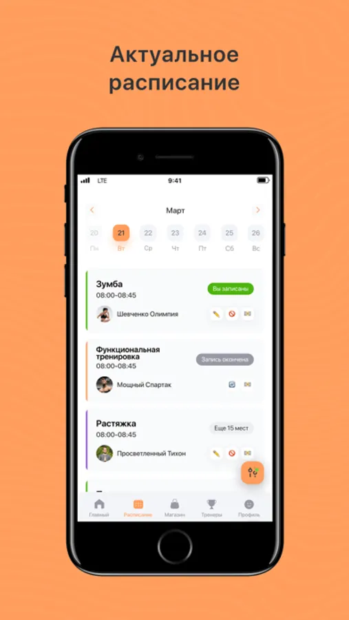 Записаться/перенести/отменить запись на занятие;