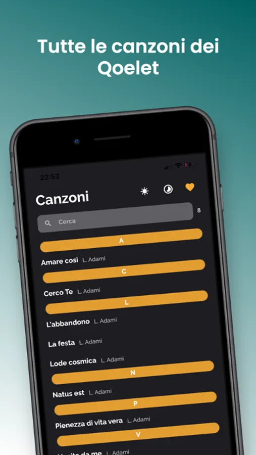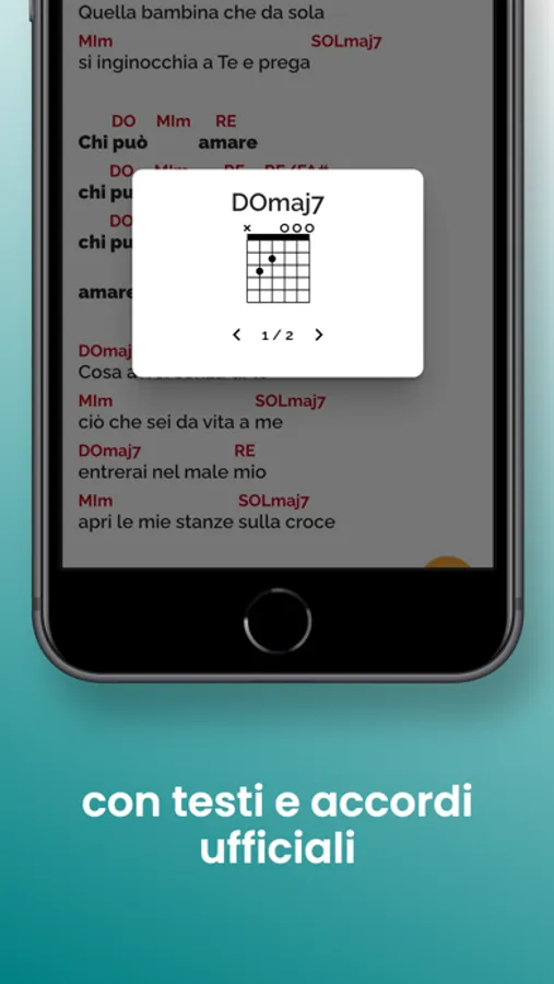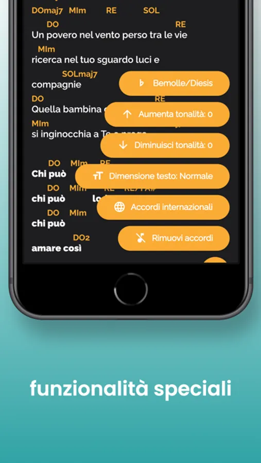 È possibile visualizzare le canzoni con o senza accordi e gli accordi con varie nomenclature.