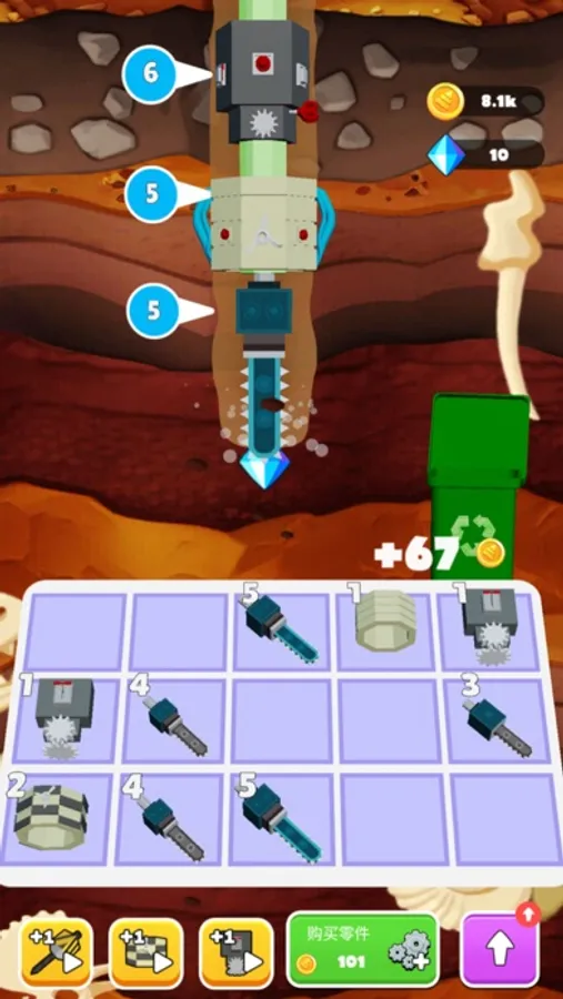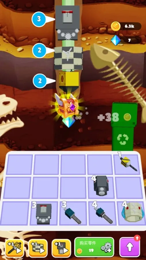In the game, you will face various exciting challenges and obstacles, requiring clever choices in component synthesis to acquire a more powerful drilling machine. Each new component brings unique functions and abilities, such as increasing digging speed, boosting gem earnings, or unlocking special powers. By constantly upgrading and improving your drilling machine, you can explore the underground world more extensively and discover a greater variety of precious gems and treasures.
