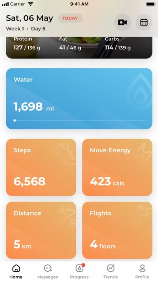 The app integrates with Apple Health to show your daily activity - distance, steps, active energy, and flights to help you better achieve your goals.