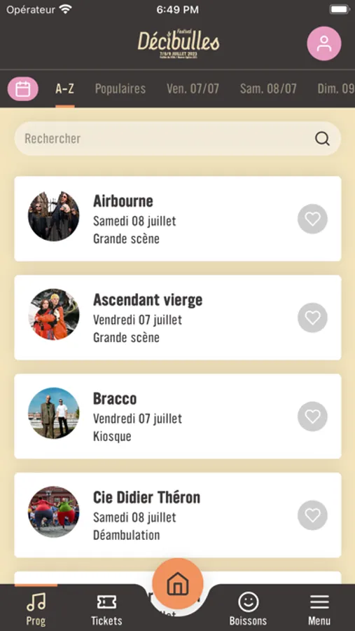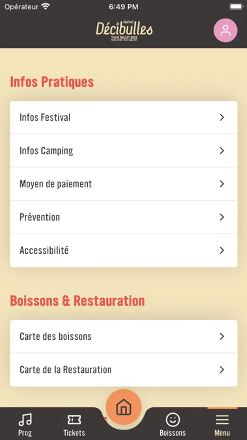 Vous pourrez retrouver toutes les informations nécessaires pour passer un bon festival : horaires des concerts, infos pratiques, détails de la programmation, carte des bières, notifications des concerts...
