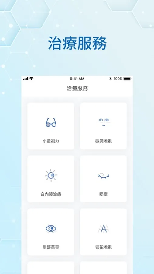 透過我們的Apps,您可以輕鬆地查詢我們提供的眼科手術和治療方案,如無刀飛秒激光白內障手術、蔡司PRESBYOND LBV老花矯視技術、SMILE微笑矯視、LASIK激光矯視、眼部美容與成形手術,以及針對各種眼疾的治療方案。同時,您可以輕鬆地預約手術服務,以及獲取最新的醫療資訊,包括健康建議和預防措施。