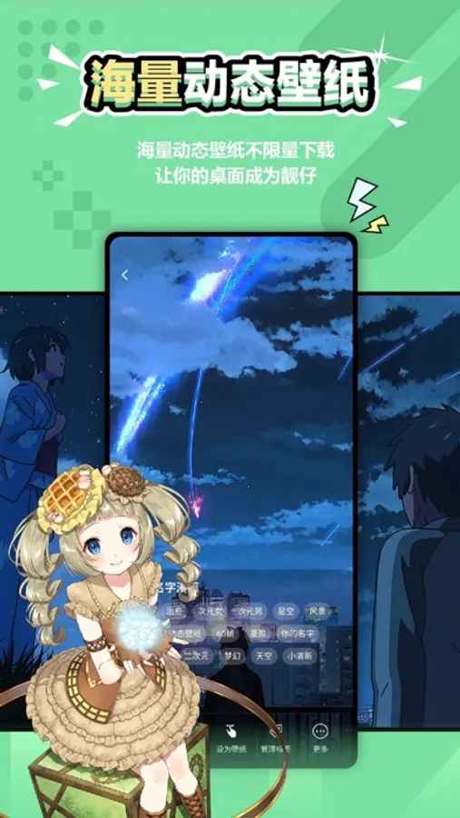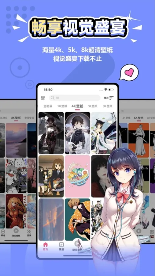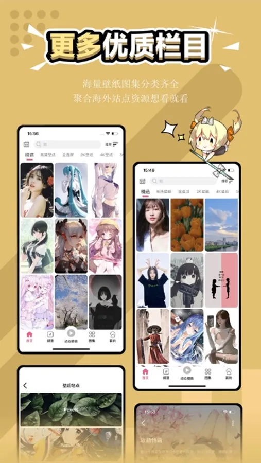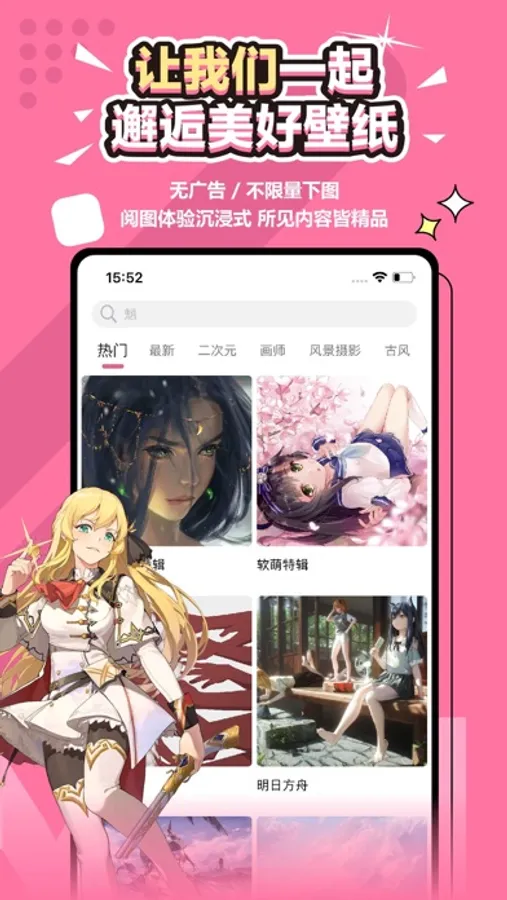 一款充满设计美学的壁纸应用,免费无广告,UI界面简约优雅,给你带来浏览壁纸的沉浸式极致体验!专注为大家提供海量丰富精美壁纸,类目齐全,涵盖二次元,插画,唯美场景,美女、风景、赛博朋克等主题壁纸内容。提供图集、日签、频道等发现美图壁纸的内容板块,带给你邂逅美好壁纸的乐趣!