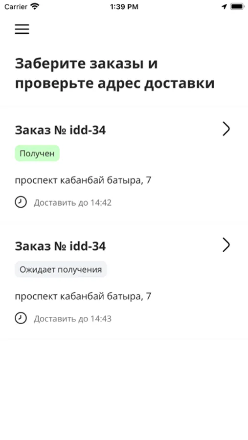 Mobile App for inDrive Delivery Couriers. The App helps couriers to deliver orders, run order statuses and confirm delivery steps. It also has additional features such as tutorials and tests, shift schedule and daily statistics.
