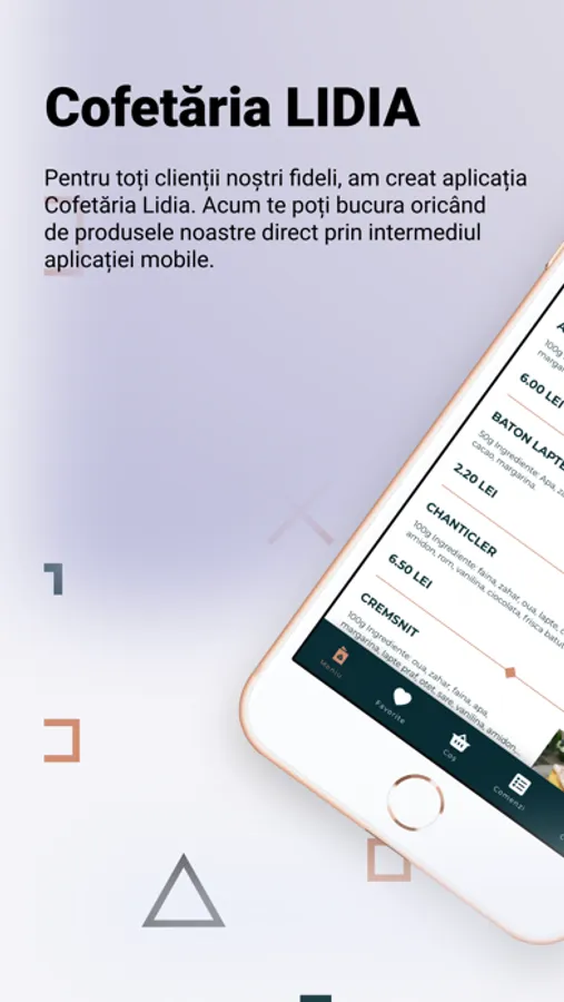 Pentru toți clienții noștri fideli, am creat aplicația Cofetăria Lidia. Acum te poți bucura oricând de produsele noastre direct prin intermediul aplicației mobile. Comandă și plătește prin intermediul aplicației. Selectează metoda de livrare preferată, îți livrăm comanda aleasă, poți ridica comanda sau ne întâlnim chiar la jumătatea drumului.