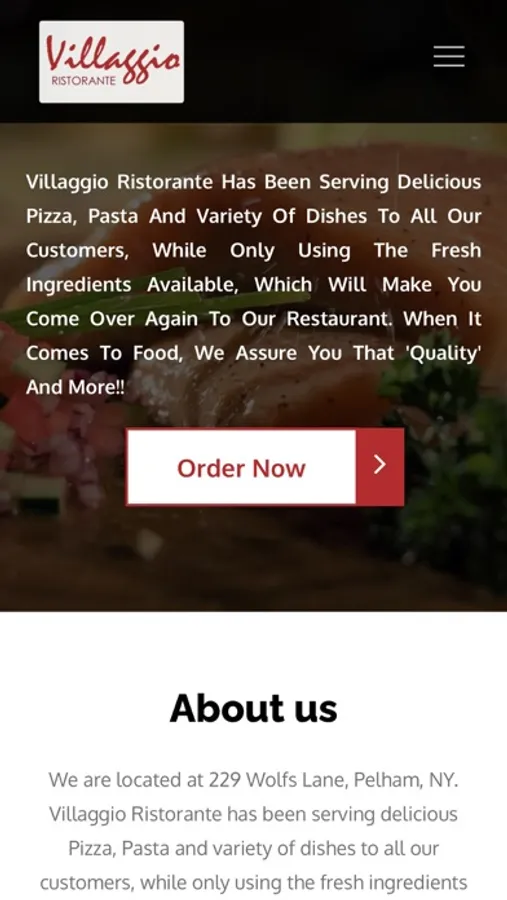 We are located at 229 Wolfs Lane, Pelham, NY.Villaggio Ristorante has been serving delicious Pizza, Pasta and variety of dishes to all our customers, while only using the fresh ingredients available, which will make you come over again to our restaurant. When it comes to food, we assure you that 'Quality' and more!!Our menu not only consists of Pizzas, but we also have a wide range of Insalate, Antipasti Freddi, Pasta, Risotto, Pesci and many more!!