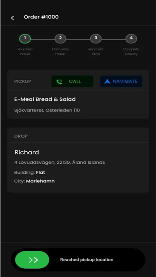 Driver pickup the order from the merchant and deliver it to the customer location.