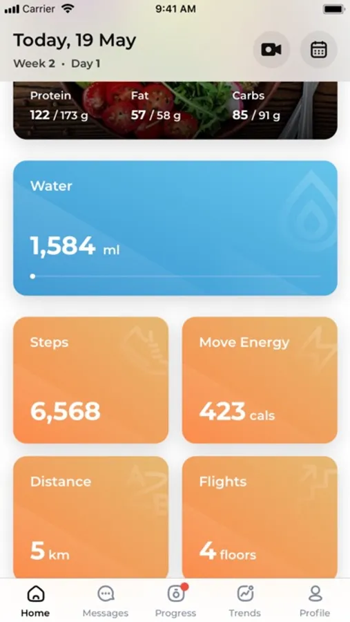 The app integrates with Apple Health to show your daily activity - distance, steps, active energy, and flights to help you better achieve your goals.