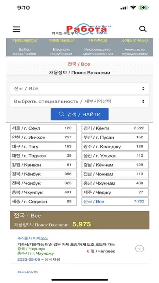 "Job" for foreigners from the CIS countries in South Korea. You can issue information about the vacancy in Korean and Russian so that you can quickly hire the right foreigner.