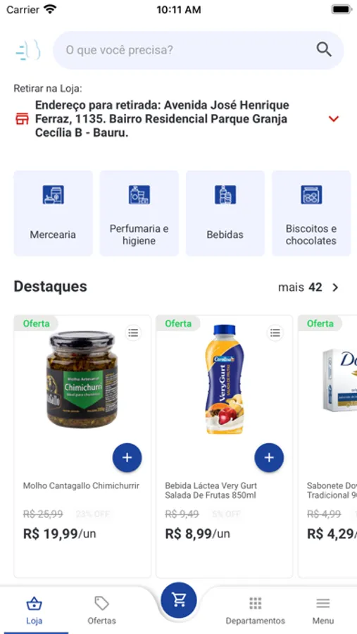 - Seleção de centro de distribuição: Selecione a unidade do supermercado mais próximo da sua casa baseado no seu CEP.