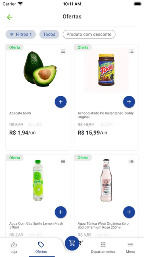 - Seleção de departamentos: É possível navegar entre departamentos de produtos para maior direcionamento e compras de uma seção específica.