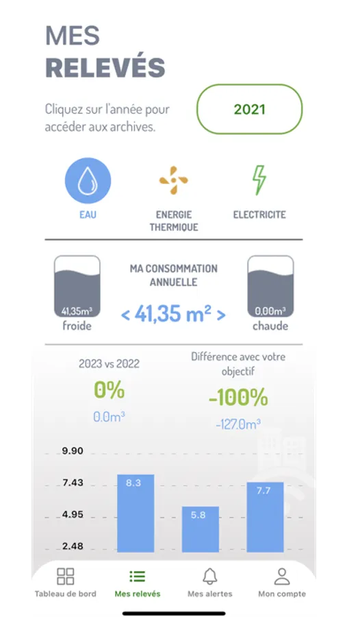 Comparez et analysez les performances énergétiques de votre logement une alerte (mail et sms) en cas de fuite ou de dépassement d’objectif .