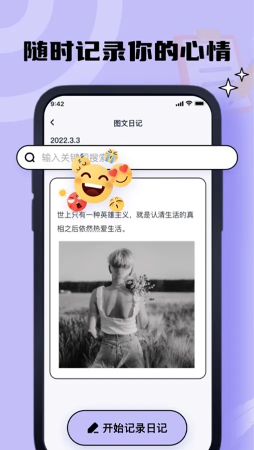 今天在哪里喝咖啡,何时读到了一句击中心灵的句子,记录每一天的开心、记录偶尔的emo,把每一个有意义的瞬间写进夏禹日记本,永远地留住!自由地记录与表达,支持文字与音频,不管何时何地,都能写下自己的小情绪~