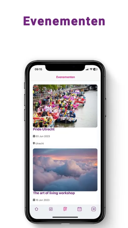 In de agenda zie je wanneer er een evenement plaatsvindt. Ook deze evenementen worden net als de artikelen aangeboden door onze leden.