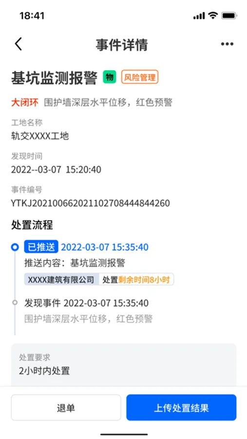 事件处理:当发生安全事故、违规行为或其他问题时,系统会根据事件类型和等级将事件推送到相应的用户进行处置闭环。用户可以在应用程序中提交事件报告并跟踪事件的处理过程。