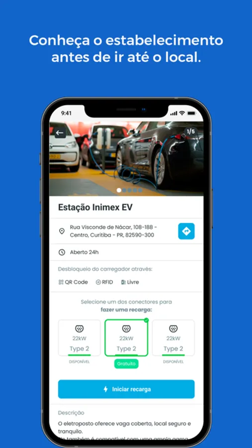 Com um mapa abrangente de pontos de abastecimento para carros elétricos em todo o Brasil, o Inimex EV permite que você encontre e libere facilmente os pontos de recarga mais próximos, com informações detalhadas sobre os modelos de conectores disponíveis em cada ponto, velocidade de carregamento e disponibilidade em tempo real.