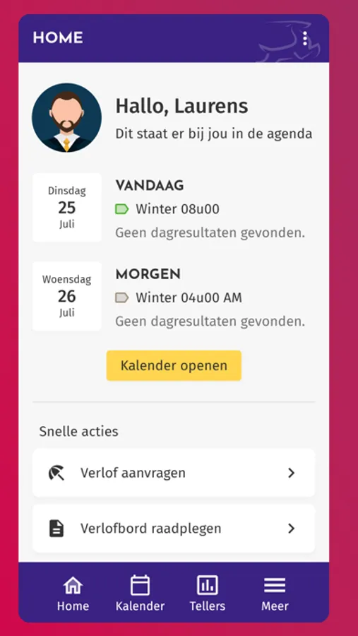 Met de workforce management App van Syntegro zijn medewerkers altijd goed geïnformeerd en betrokken bij hun werkregeling. Ze hebben zicht op hun prestaties, planning, verlof saldo’s en meer. Ze kunnen zelf werktijden, uitgevoerde taken, woon-werk verplaatsingen enzovoort registreren. Via de App kunnen ze ook eenvoudig een verlofaanvraag doen, een attest of onkostennota opladen. Leidinggevenden, HR-medewerkers en planners gebruiken de App vooral voor het goedkeuren van verlof en andere aanvragen.