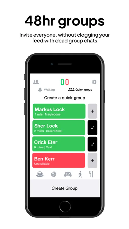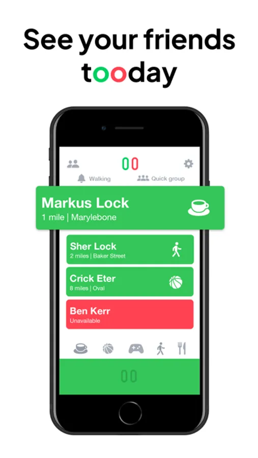 Escape your phone and see your friends today. Instead of wasting your day asking around and waiting for replies, just tap and notify your friends that you’re free. Quickly make plans and enjoy your life Tooday.