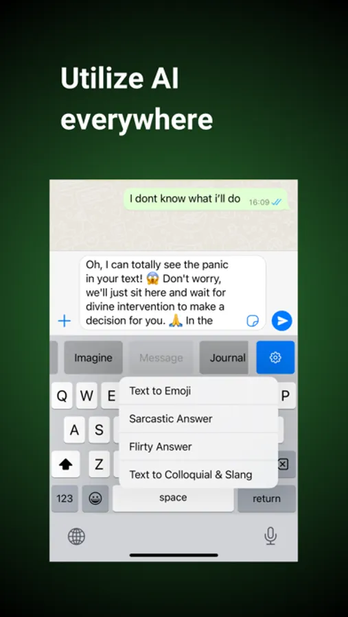 Message: Convert text to emojis, transform text into colloquial and slang terms, craft sarcastic messages, or create flirty texts