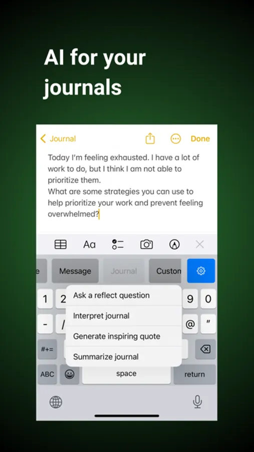 Journal: Ask reflective questions, interpret journal entries, generate motivational quotes, and summarize your thoughts