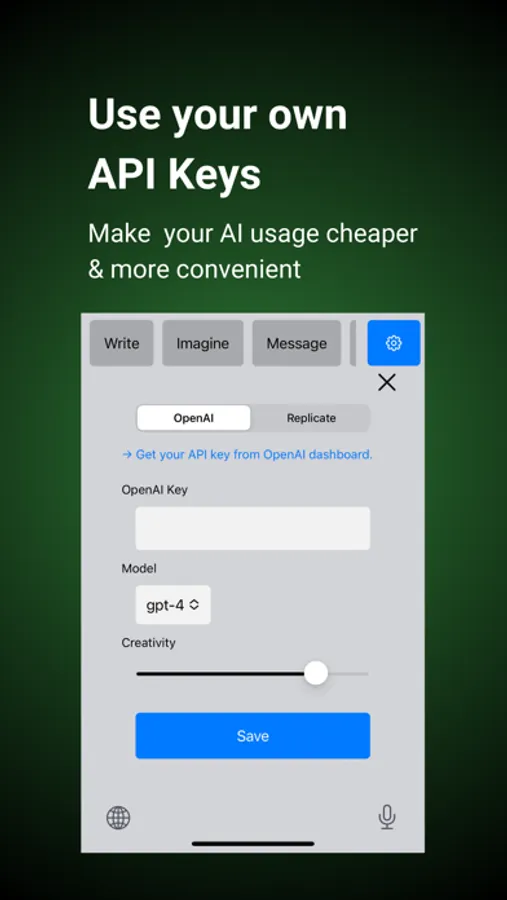 Please note that in order to use the X keyboard, you should add your OpenAI API key in the settings section. The usage costs for OpenAI's ChatGPT and Dall-e APIs are quite affordable. You only pay for what you use. The approximate price is about 100,000 words for $1 with the ChatGPT API, and $0.02 per image with the Dall-e API.