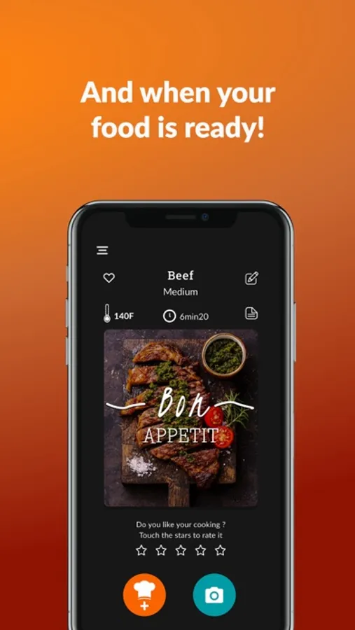 The application adapts to your needs: need to baste the meat during cooking? Set an alarm so that meat°it 2023 warns you halfway through cooking, after 20 min or when the temperature reaches 100°F.
