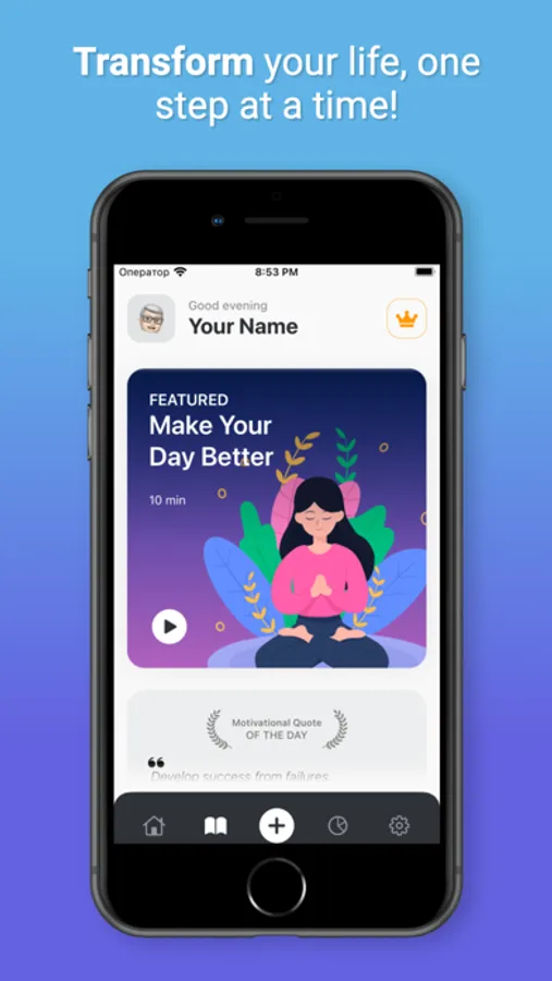 - Meditation Library: Access a curated collection of meditation sessions, featuring a featured item and motivational quote updated regularly.