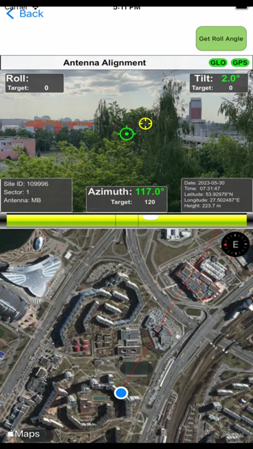 This application is intended to assist in the correct installation of cellular sector antennas (azimuth, tilt and roll alignment)