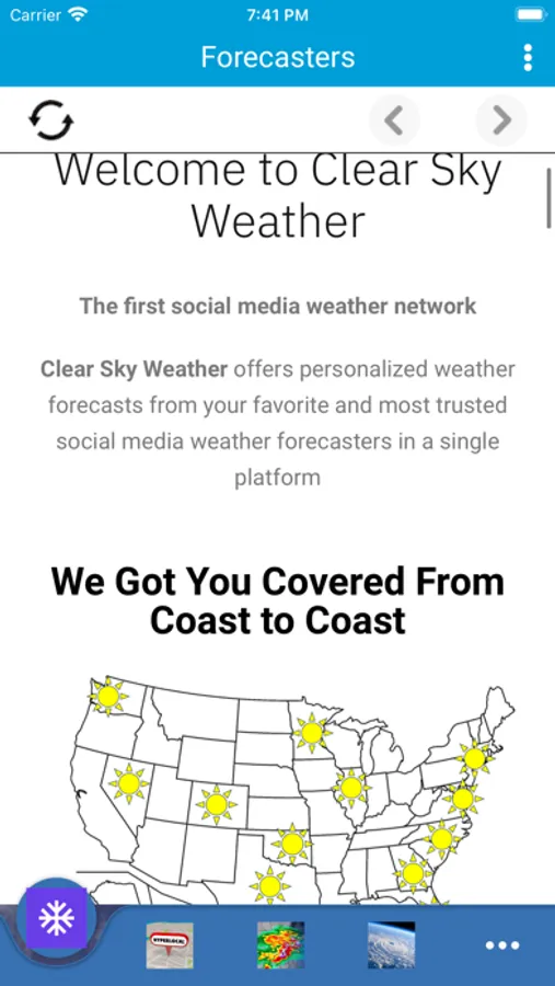 Clear Sky Weather is a free mobile app that provides forecasts from trusted weather experts. Unlike other apps, we handcraft each forecast and offer a custom forecast service. Join the interactive experience, and enjoy weather forecasts "Just for You" before -- during -- and after the storm.