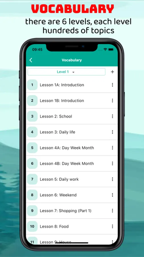 - Vocabulary by levels, topics, flashcard mode to increase memorization ability, speaking mode to increase correct pronunciation